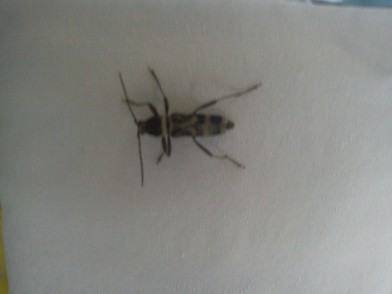 我捉了一只貌似是天牛的昆虫,外貌和天牛一样,可是它的触角上有一团一团的绒毛,知道的是一声哈,