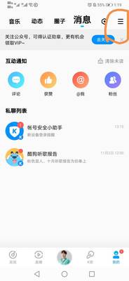 1.打开酷狗音乐,找到我的那里,点那三行进去,