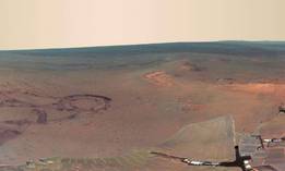 与地球类似,火星也是颗岩石行星,这意味着人类可以站在火星的表面欣赏风景。但火星上并没有什么迷人的风光,那里到处都是红色的灰尘,氧化铁的粉尘,它把火星整个儿染成了红色,火一样的颜色。