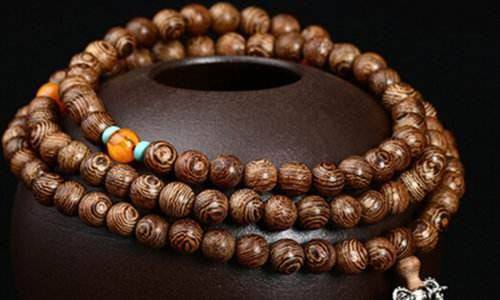 这是鸡翅木的串珠。和紫檀、海黄等不是一个档次,便宜很多。通常几十元到小几百元居多。