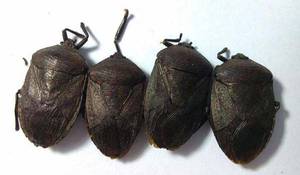 九香虫,即半翅目,异翅亚目,蝽科的瓜黑蝽。是一种会飞的青黑色昆虫,指甲般大小,状如水龟。春夏季节,爬在农作物的茎叶上吸食浆液,不留心碰上它,便放出一种奇臭难闻的气体,使人避而远之,因而落个“臭板虫”,“屁巴虫”或“打屁虫”的臭名。