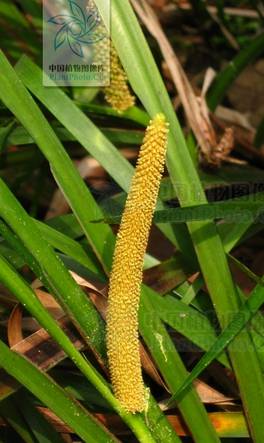 【植物形态】常绿多年生草本,高可达750px左右,根茎横生,全株具香气。硬质的根状茎横走,多分枝。叶剑状条形,两列状密生于短茎上,全缘,先端惭尖,有光泽,中脉不明显。4~5月开花,花茎叶状,扁三棱形,肉穗花序,花小而密生,淡黄绿色。浆果肉质,倒卵圆形。