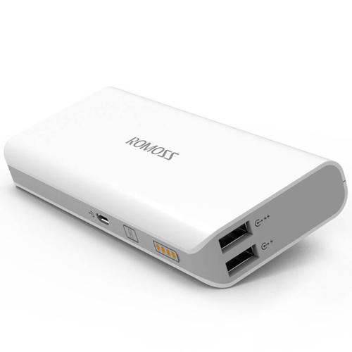 罗马仕sense 4移动电源外观简约时尚,体积比较适中,外出时携带很方便,内置电量充足持久,标称电芯容量为10400mAh,可以兼容各类智能手机、平板电脑等数码设备,续航能力持久,采用双USB输出接口,同时为两部设备充电更加节省时间,适合设备较多的用户使用。