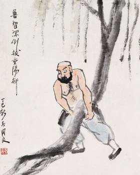 鲁智深忍受不住佛门清规,醉打山门,毁坏金身,被长老派往东京相国寺,看守菜园,因将偷菜的泼皮踢进了粪池,倒拔垂杨柳,威名远播。鲁智深在野猪林救了林冲,高俅派人捉拿鲁智深鲁智深在二龙山落草。后投奔水泊梁山,做了步兵头领。宋江攻打方腊,鲁智深一杖打翻了方腊。后在杭州六合寺圆寂而死。