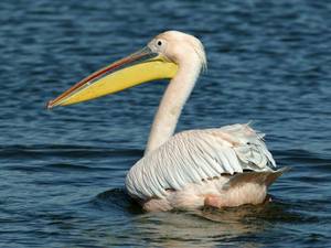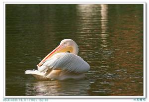 白鹈鹕1(学名:Pelecanus onocrotalus),俗名又称犁鹕, 逃河, 淘鹅,塘鹅,淘河,,(夸鸟)鸭。繁殖都在欧洲东南地区,越冬在亚洲西南部以至非洲。在中国见于新疆(天山西部, 准噶尔盆地西部和南部水域, 塔里木河流域), 青海湖。