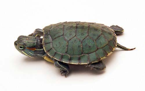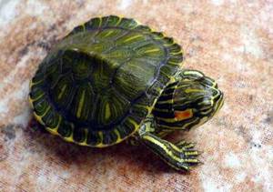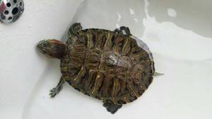 巴西红耳龟(Trachemys scripta elegans),英文名:Red-Eared Slider,也叫巴西龟、红耳龟、小彩龟,属于泽龟科滑龟属,是一种水栖龟类。因其头顶后部两侧有2条红色粗条纹,故又名为红耳龟。