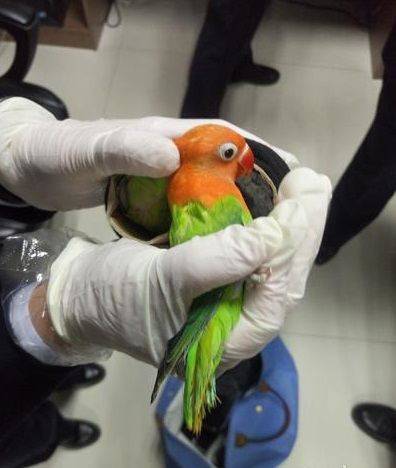 2.在判断牡丹鹦鹉公母的时候,我们经常要把牡丹鹦鹉从笼子里面捉出来,在捉出来攥在手里的时候会被咬,有人怕被咬戴着手套,由于握着牡丹鹦鹉的姿势不对,隔着手套都被咬出血。