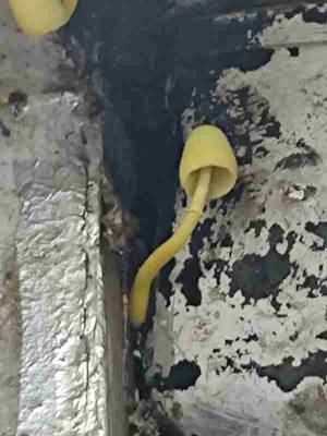 子实体较小,柠檬黄色。菌盖直径2-5cm,初期呈钟形或斗笠形,后期稍平展,表面有一层柠檬黄色粉末,边缘具细长条棱。附图仅供参考对比。