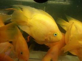 黄鹦鹉鱼可谓鱼类中的吃货,什么活虾、饵料、薄片等等都吃,但是绝对不能喂食小河鱼。鹦鹉鱼贪吃,不知饥饱,因此给鹦鹉鱼喂食小河鱼会撑到,另外鹦鹉鱼的鳃很脆弱,小河鱼对鳃也有不良作用,喂食小河鱼还会使鹦鹉鱼体色退色。