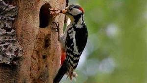 当遇到虫子躲藏在树干深部的通道中时,它还会巧施“击鼓驱虫”的妙计,用嘴在通道处敲击,发出特异的、使害虫产生恐惧的击鼓声,使害虫在声波的刺激下,昏头转向,四处窜动,往往企图逃出洞口,而恰好被等在这里的啄木鸟擒而食之。