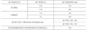 (16)接户线在档距内不得有接头,进线处离地高度不得小于2.5m。接户线最小截面应符合表6-14规定。接户线线间及与邻近线路间的距离应符合表6-15的要求。