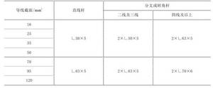 横担宜采用角钢或方木,低压铁横担角钢应按表6-11选用,方木横担截面应按80mm×80mm选用。