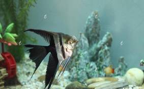 这是淡水热带鱼中的神仙鱼,也叫燕鱼,是家庭饲养观赏鱼的常见品种。照片上的就是普通品种的神仙鱼。