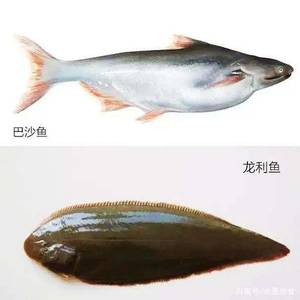 巴沙鱼长的和一般淡水鱼差不多,其体表无鳞而身扁圆,头部扁平而宽,腹部较白而狭窄,长有鱼须,因属于鲶鱼形类,因此跟鲶鱼相近。龙利鱼因为生长海底,海水压力大,因此身体呈扁平,双目长于身体一边,属于鲽形目,舌鳎科,因外形扁平形如舌头,也叫舌头鱼,子板鱼。