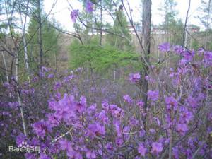 兴安杜鹃,又名达子香花、满山红、映山红、金达莱,是朝鲜的国花。属于杜鹃科,喜欢生长在崇山峻岭的陡壁上,叶椭圆形,花为红色,花期短,可供观赏。在中国东北地区,每年四月下旬冰雪末尽时开始开花,先花后叶。有“木本花卉之王”的美称。