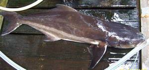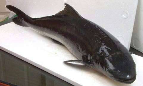 下图为 军曹鱼 Rachycentron canadus(海鲡),俗称 海竺鱼、锡腊白、海干草 、海丽仔、懵仔鱼、鱼仲、懵仲