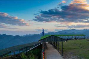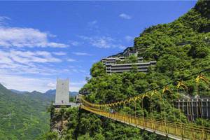 在山脚下游客中心乘坐羌村寨索道约15分钟到达前山西羌酒店,可选择乘坐高空滑道或步行至险山平台。滑道上行可以缓解你的登山疲劳,下行也很刺激。