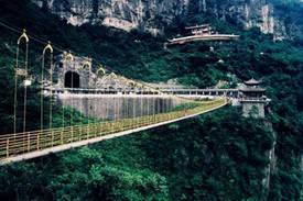 2、到穿越再现神韵“猿王与仙女”爱情传说的情人桥,观险峰之间的雌雄碉楼;