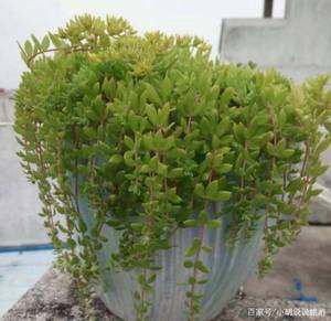垂盆草是一种景天科景天属的多年生草本多肉植物,分布区域也比较广。它的叶子呈倒披针形或事长圆形,每年5–7月份间会开出黄色的小花,别名在农嫂的家乡里叫它爪子草,我们农村里很是常见的一种野生植物,常见于生长在岩石缝隙、山沟、路边、水边等地。垂盆草生长对于环境要求并不高,耐贫瘠,性喜温暖湿润的环境中生长,而且繁殖能力特别强,能自播繁衍。目前已被人们广泛的应用在城市景观的工程中或是被植被于家庭盆栽的养护中,做为室内养护其观赏性很高。