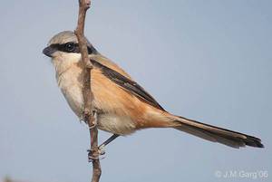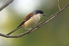 下图为 (亚成鸟)栗背伯劳 Lanius collurioides ,