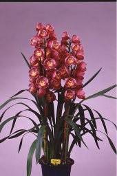 大花蕙兰 大花蕙兰原产中国是蕙兰花的新品种。大花蕙兰拉丁名Cymbidium,别名虎头兰、喜姆比兰、蝉兰、西姆比兰。为兰科兰属植物。 常绿多年生附生 草本。是兰科兰属中大花附生种类的总称。假 鳞茎粗壮,长椭圆形,稍扁;上面生有6枚~8 枚带形叶片,长70厘米~110厘米,宽2厘米~3厘米。花茎近直立或稍弯曲,长60厘米~90厘米,有花6朵~12朵或更多。花葶40至150厘米不等,叶色浅绿至深绿,标准花茎每盆3至5支,每支着花6至20朵花。其中绿色品种多带香味。 花大型,直径 6厘米~10厘米,花色有白、黄、绿、紫红或带有紫褐色斑纹。是栽培十分广泛的洋兰之一,深受世界各国人民的喜爱。用分株法繁鉴定这是什么花?