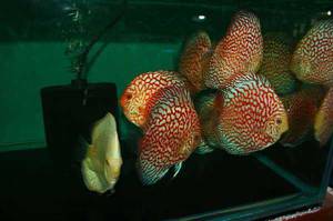 三、成鱼:七彩神仙鱼身上的色彩要到成鱼期12厘米以上才会正式表现出来,这时七彩神仙鱼开始出现配对的情形,体色会变得更艳丽,上下鳍的黑晕轮廓加深,有占地盘的现象。成鱼每天投喂2次,以人工汉堡为主。在换水方面,每天换1/3即可。