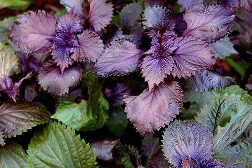 紫苏为唇形科一年生的草本植物,和薄荷同属于一个科。既可以药用也可以食用,药用具有解表散寒、镇咳平喘的功效。紫苏叶片是主要食用部分,食用量不大,主要作为配菜,和黄瓜、青椒凉拌在一起,又爽口又开胃;在炖鱼、炖鸡时也可以放入紫苏叶片,能够去除鱼的腥味。