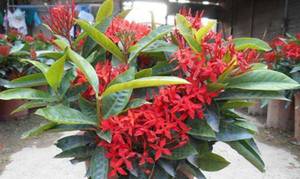 4、换盆和修剪:龙船花一般2年换一次盆,换盆时间最好是在5月初。换盆时要将一些老根适当剪除。龙船花的修剪一般在春季出室后进行,主要是对植株进行适当疏枝,以利于通风,生长良好,分枝较少则应强剪主枝,以便使龙船花多生侧枝。
