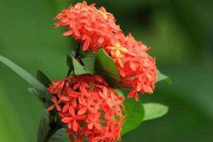 5、病虫害防治:龙船花常见的病害有叶斑病、炭疽病和煤污病,如有发生,应该及时通风和做好水肥管理,还可以喷施多菌灵800倍液进行防治。常见虫害有介壳生、红蜘蛛和蚜生,如果出现这类虫害,数量较少时可人工捕杀,数量较多时就需要使用40%氧化乐果乳油1500倍液喷杀,以及2.5%鱼藤精乳油1200倍液喷杀。