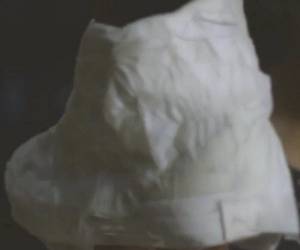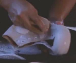 5、待鞋子彻底干透后,摘下表面的卫生纸(上面吸附了很多未冲洗干净被风干的皂液色)。