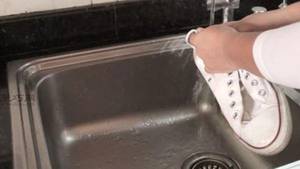 1、将泥水鞋子放在清水浸泡1-3分钟,去掉表面的泥土。