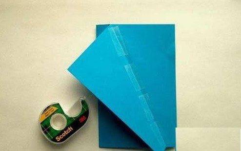 10、接着做一个风筝线的连接口。先用剪刀钻洞,注意洞不要离边缘太近,然后用胶带把它粘住,再用针或者其他比较尖的东西穿孔,用来穿风筝线;