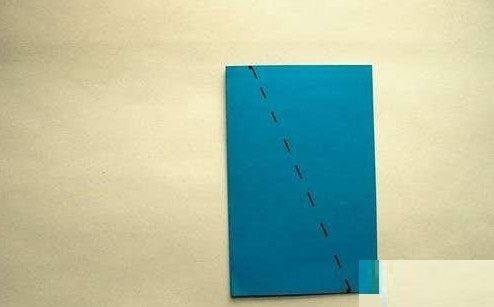 3、下一步在对折后的纸上画一条线,如下图所示;