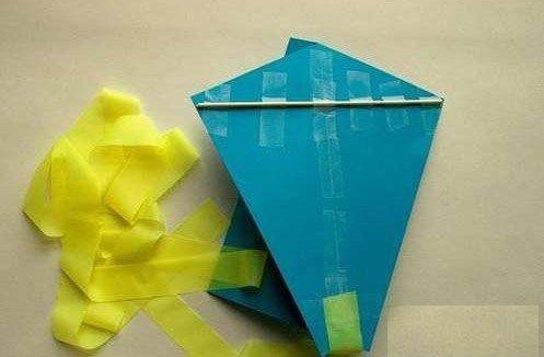 三、最后一步就是为风筝贴好封面。这样才能看见棍子的应该是朝地下的一面,然后为风筝做三条尾巴,先贴还是不贴,看飞的时候的实际情况。最后准备,三个纸条贴的尾巴,万一风筝飞不起来就贴在尾巴上,风筝飞的更平稳;风筝绑线和试飞,线最好用牢固一点的,飞高了好收回来,这样风筝就做好了。风筝的制作方法是比较的多,为了稳定还可以贴上尾巴。经过一系列的工艺,大风筝最后才制作完成。