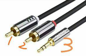 图中的1,是功放机音量电位器的信号端。机外连接时就要用3.5转莲花插头音频线如图: