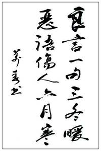 应该是:“良言一句三冬暖,恶语伤人六月寒”