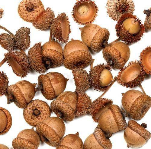 橡果也叫橡实、橡子、橡栗。含淀粉,可食,味苦。长圆形,含淀粉和少量鞣酸,外壳可以制栲胶,又被叫做橡实、橡子。有的地区叫做橡碗子。橡子主要产于我国的鄂东山区。 橡子外表硬壳,棕红色,内仁如花生仁,含有丰富的淀粉,含量达百分之六十左右。既可食,又可作纺织工业浆纱用的原料。橡果是人类早期最主要的食物之一。也可制成橡子面。