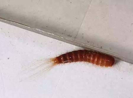 这种虫子叫皮蠹(pí dù),看图片还处于幼虫期,幼虫会咬人,如果被咬了可以用清水冲洗,过氧化氢消毒。根除首先要看一下你屋子里有没有储存粮食,如果有,应该就是从粮食里面出来的。把储存粮食的地方彻底清理一遍,然后喷洒杀虫剂。