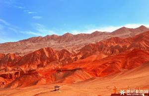 火焰山古称赤石山,位于吐鲁番盆地的北缘,古丝绸之路北道。呈东西走向。火焰山,维吾尔语称“克孜勒塔格”,意为“红山”,唐人以其炎热曾名为“火山”。山长100多公里,最宽处达10公里,海拔500米左右,主峰海拔831.7米。火焰山童山秃岭,寸草不生,飞鸟匿踪。每当盛夏,红日当空,赤褐色的山体在烈日照射下,砂岩灼灼闪光,炽热的气流翻滚上升,就像烈焰熊熊,火舌撩天,故又名火焰山。
