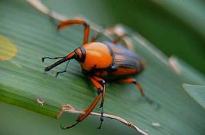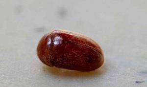 成虫身体卵圆形,长约3毫米,红黄色至红褐色。头生在前胸下面,背面不能见。前胸背板高凸,圆弧形。复眼大,黑色。触角11节,锯齿状。鞘翅上的刻点不明显,也不排列成纵行。