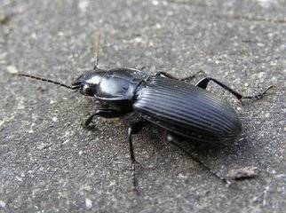 这是:中华贪步甲,属于步甲科,对人没有危害,是夜宴受灯光吸引飞进室内的。