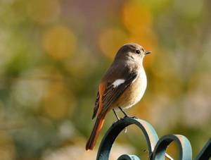 (学名:Phoenicurus auroreus)(běi hóng wěi qú):是小型鸟类,体长13-15厘米。雄鸟头顶至直背石板灰色,下背和两翅黑色具明显的白色翅斑,腰、尾上覆羽和尾橙棕色,中央一对尾羽和最外侧一对尾羽外翈黑色。前额基部、头侧、颈侧、颏喉和上胸概为黑色,其余下体橙棕色。雌鸟上体橄榄褐色,两翅黑褐色具白斑,眼圈微白,下体暗黄褐色。 相似种红腹红尾鸲头顶至枕羽色较淡,多为灰白色,尾全为橙棕色,中央尾羽和外侧一对尾羽外翈不为黑色。