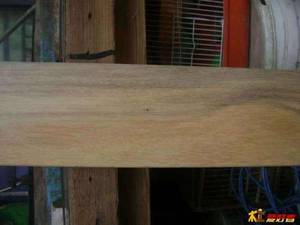 木屑放在嘴里嚼一嚼吐出来,口水变成褐色,口腔有点光滑感。光泽强、量重。握钉力强。刨面光滑。木材性质稳定,不易变形、开裂,耐腐,不生虫,颜色不褪。心材板放在阳台上2年,表面没有老化现象,抹去灰尘,还是那么新鲜。