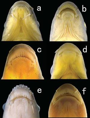 它区别于所有其他各属,有独特的口腔下颌骨形态;即一个拱形,宽,基本形成了吸盘的前面和侧面的下唇边缘,后下唇沟和下唇的锯齿形的中间和侧面裂片之间心理槽;延髓腹侧缘弧形盖,薄,具小乳突;侧盖不覆上唇,上唇与下唇嘴角;发达的上唇无上颚;下唇分为两侧的肉质叶和一个中心板块,这两侧的肉质叶小而短,下唇大中叶;前、外侧上下唇边缘细乳突直槽;浅,下唇和下巴之间;下颌角质边缘有薄。Paraqianlabeo lineatus为新物种,该属的物种有深色纵条纹型,沿身体两侧。