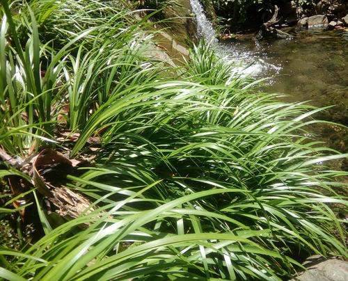 石菖蒲属于多年生草本植物,菖蒲属,整体呈丛生状,在山涧、山沟等地分布广泛,它的根茎具有一定的香味,叶片呈线形,长可达半米左右,且暗绿色或深绿色,2月~6月开白色花朵,结绿色果实,果实成熟以后会变成黄绿色。石菖蒲是有名的地被绿化植物,常常种植在树下,园林栽培很是常见。