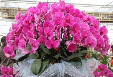 (2)花茎生长过程中需要进行多次固定,防止花茎折断。当盆中每一个花蕾长好时,就不要再改变花盆的摆放方向,以免蝴蝶兰的花开得参差不齐影响观赏。在长达 4个月的花期里,要保持室内通风和温度,并让温度控制15-18度之间。春节前后为盛花期,适当降温可延长观赏时间。开花时,夜间温度最好控制在13度- 16度之间,切忌不能低于13度。