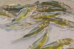 2、黄骨鱼属小型淡水名特优水产养殖品种,种类较多,常见的有岔尾黄颡鱼、瓦氏黄颡鱼、盎塘黄颡鱼、中间黄颡鱼、细黄颡鱼、江黄颡鱼、光泽黄颡鱼等。