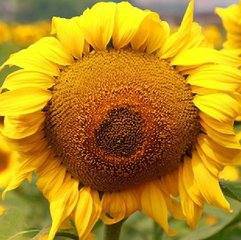 总苞片多层,叶质,覆瓦状排列,被长硬毛,夏季开花,花序边缘生中性的黄色舌状花,不结实。花序中部为两性管状花,棕色或紫色,能结实。矩卵形瘦果,果皮木质化,灰色或黑色,称葵花籽。