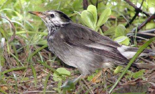 这是没成年的灰椋鸟,所以脸部的白斑不明显。见图