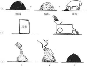 (a)日粮中粗蛋白质含量低于12%时,可添加非蛋白含氮物 (b)粉碎精料,加入尿素 (c)使用方法 1.直接拌入精料 2.制成水溶液,喷洒于精料上,搅拌成团状 3.制成颗粒饲料 4.制成舔砖(无图)